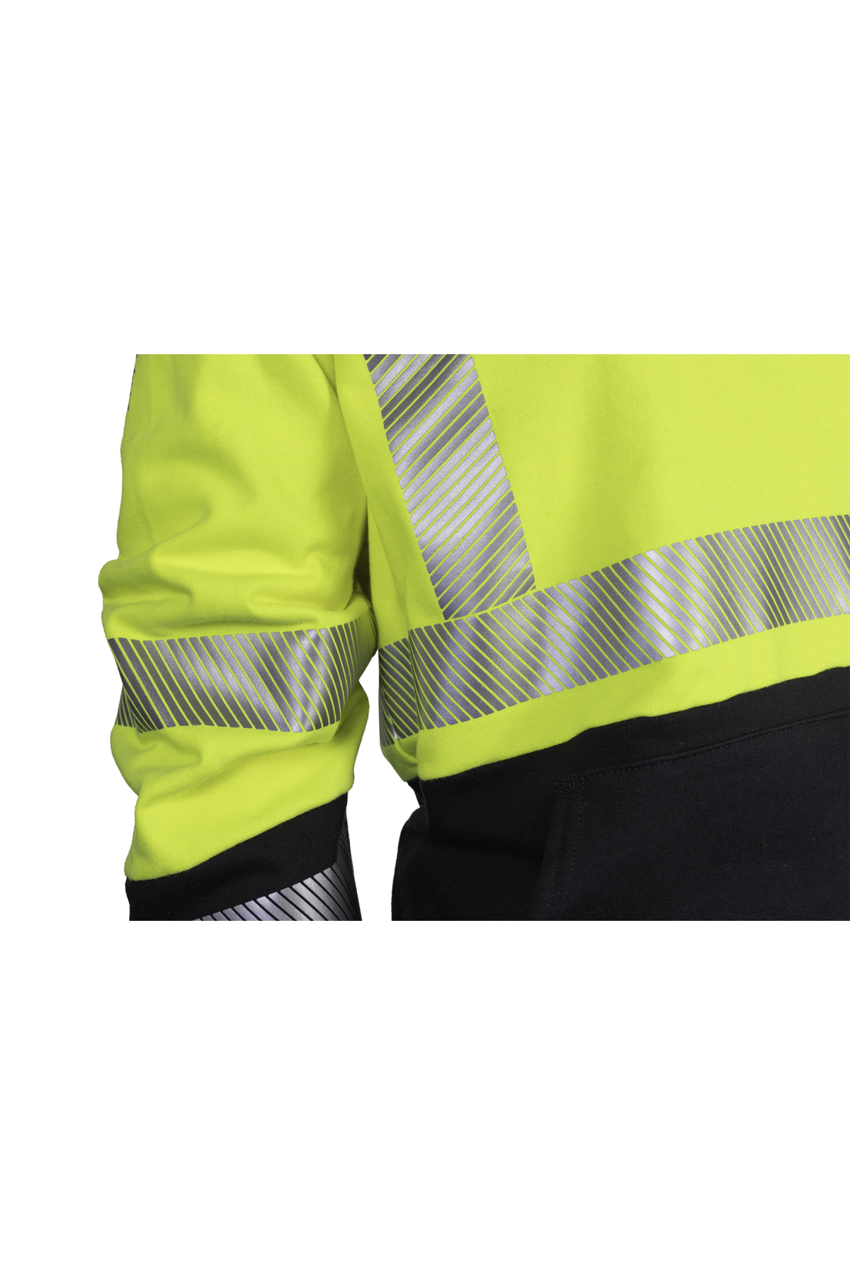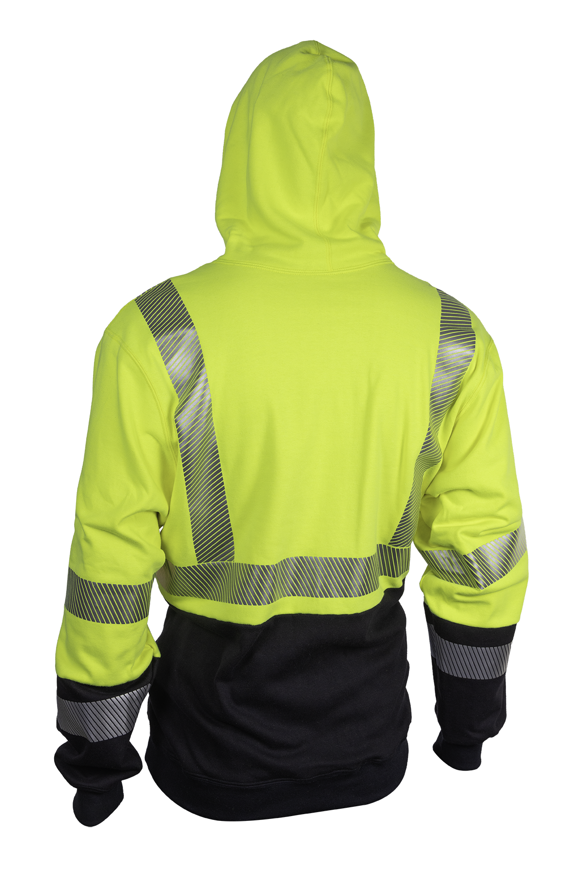 The reflective segmented tape adds flexibility while enhancing visibility, and the black lower section helps reduce visible staining—making this hoodie both practical and professional for field use.