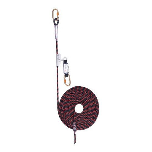 The rope grab moves along with the user climbing up or down and locks in case of a fall.