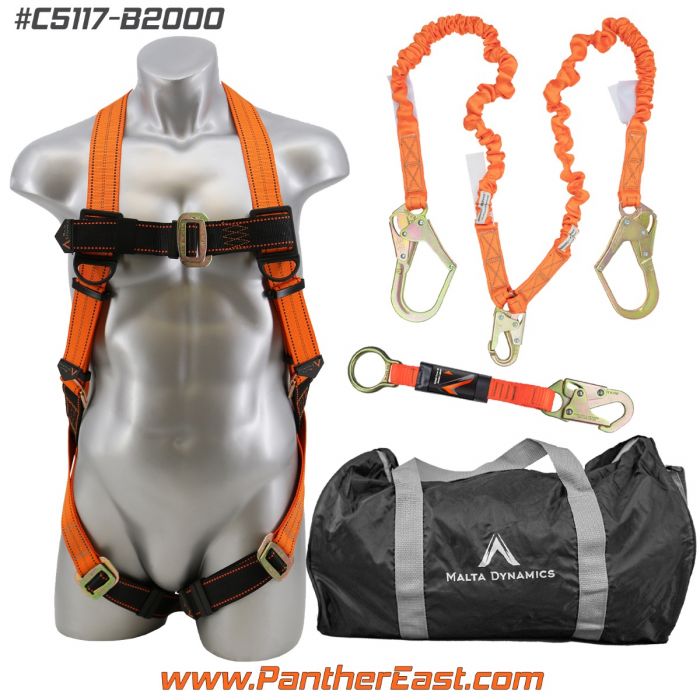 Fall Protection Kit - Pass Thru Safety Harness W/ 6′ Double Leg Stretch Lanyard