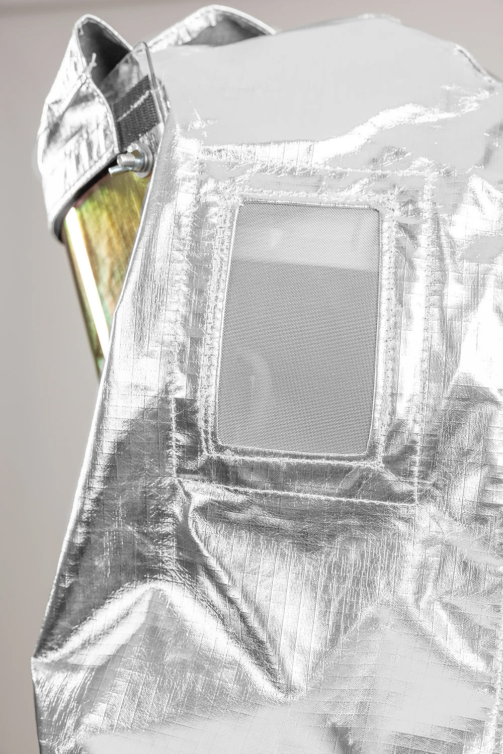 This premium hood is constructed with aluminized OPF ripstop fabric, a high-performance material designed to reflect radiant heat and withstand prolonged exposure to high temperatures. The ripstop weave enhances durability, preventing tears and extending garment life in rugged industrial conditions.